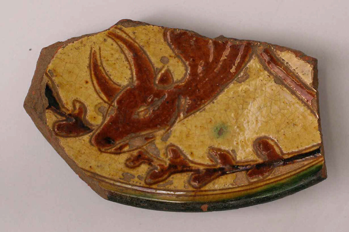- Medium:Earthenware; incised decoration through white slip and coloring under transparent glaze