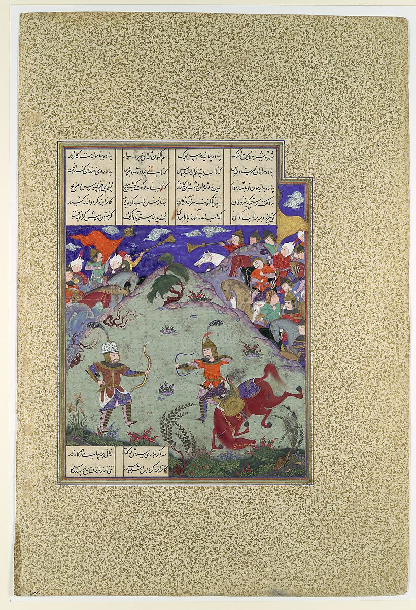 - Title: "The Combat of Rustam and Ashkabus", Folio 268v from the Shahnama (Book of Kings) of Shah Tahmasp