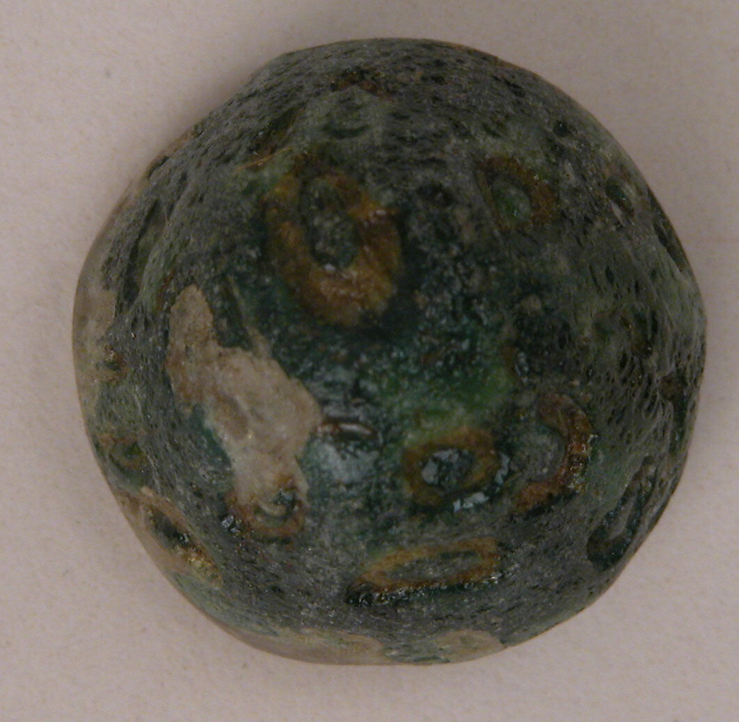 The dot-in-circle motif recalls designs presumed to be of magical significance, most likely an abstract eye to ward off the evil-eye, which serves an apotropaic function. Easily reproduced with a tool and visible in many cultures and times, this symbol may have lost its meaning, and become simply a decorative pattern, or may have one that we have not yet discovered.