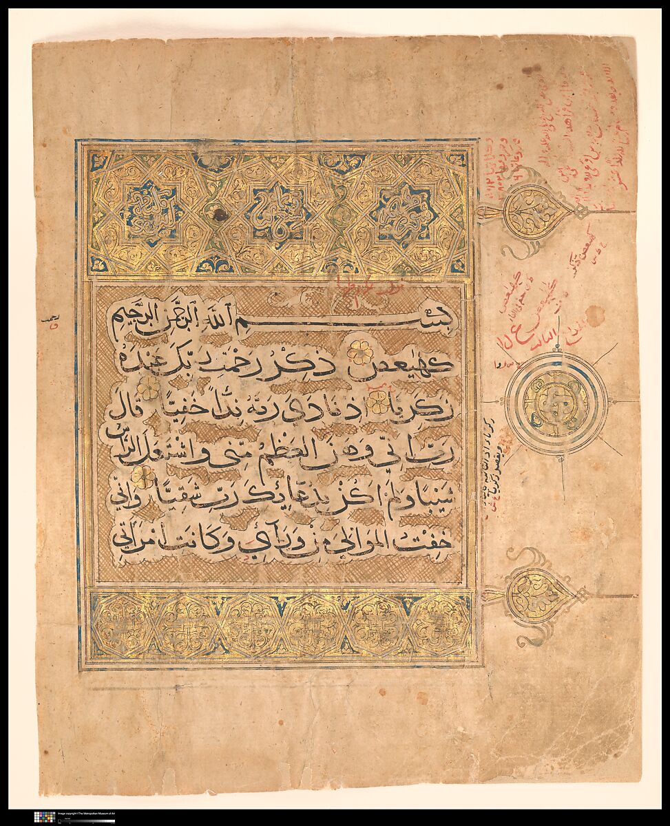 - Title:Folio from a Qur'an Manuscript with Verses from the Surat al-Maryam