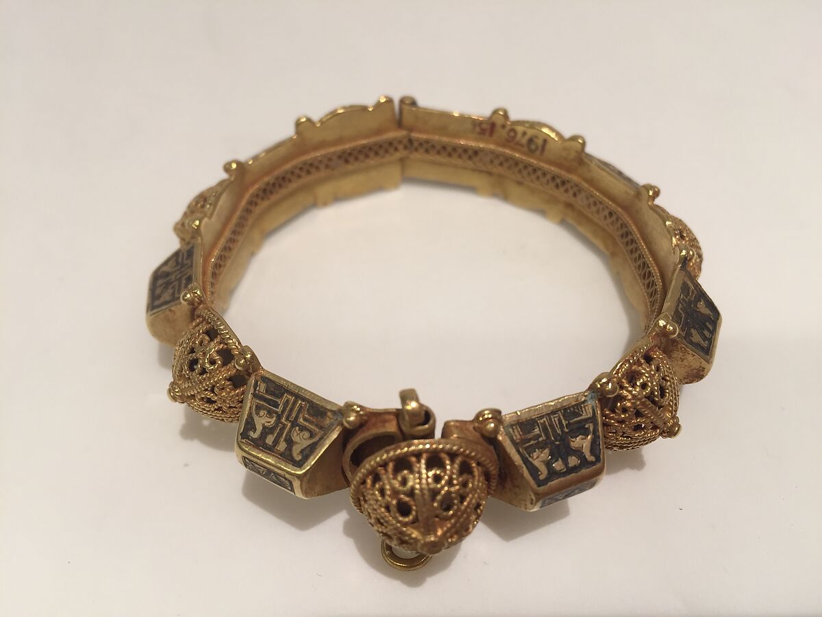 - Medium: Gold, with granulated bosses and niello designs