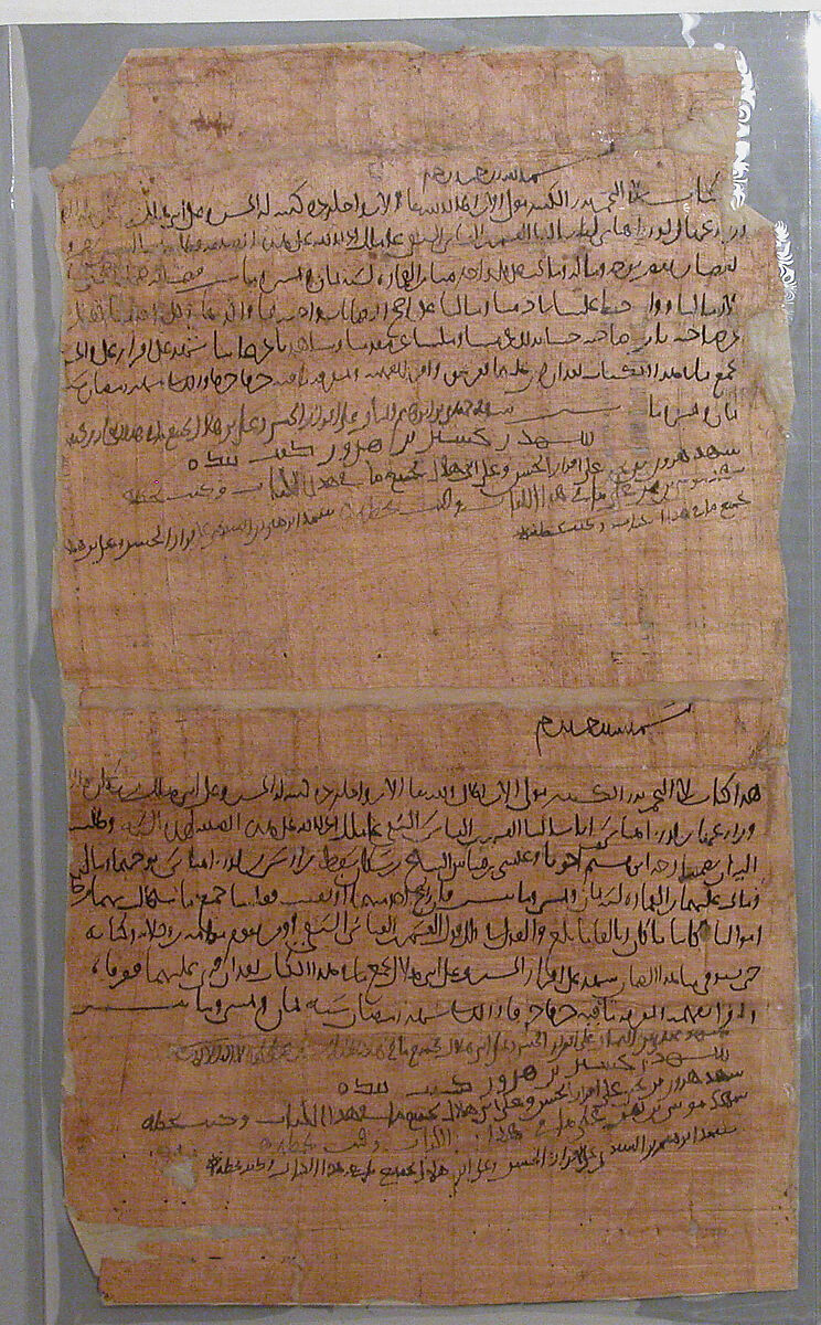 This is the recto of the Arabic papyrus 1978.348.1a. It contains another two daman (guarantee), which are related to the one on the verso. These three documents are complete and related, as each refers to the same family members and witnesses. They also share handwriting in the naskhi script.