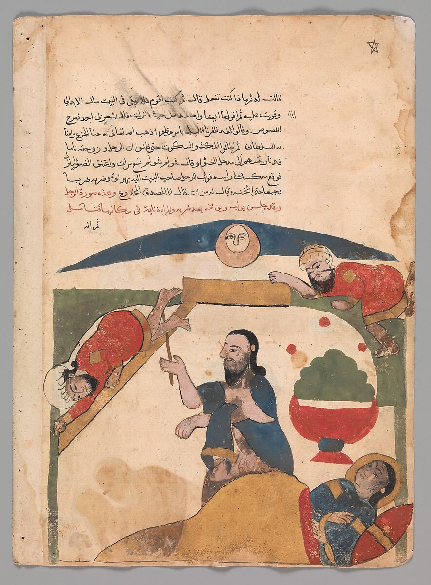 - Title: "The Thief Falls Through the Skylight in the Bedroom", Folio from a Kalila wa Dimna
