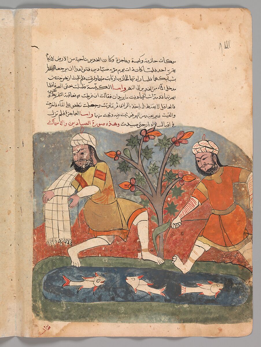 - Title: "The Fish and the Fisherman", Folio from a Kalila wa Dimna