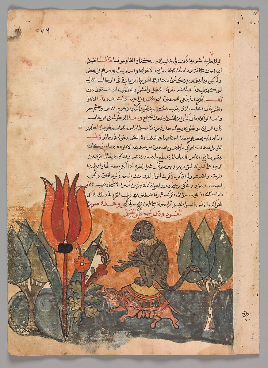 - Title: "The Tortoise Ferries the Monkey", Folio from a Kalila wa Dimna