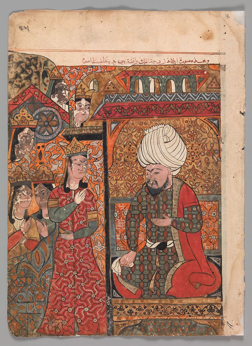 - Title:"The Queen Ilar (Irakht) Before the King Warning him About the Brahmins (?)", Folio from a Kalila wa Dimna