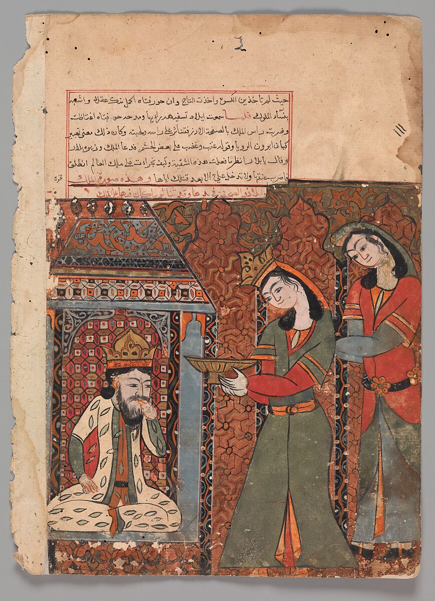 - Title: "Ilar (or Irakht) About to Throw the Bowl of Rice at the King", Folio from a Kalila wa Dimna