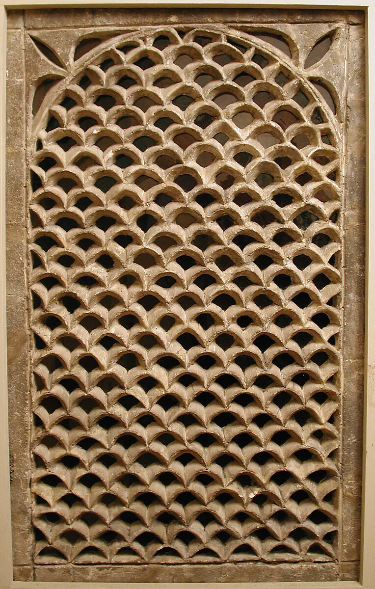 A window such as this with colored panes in blue, green, deep yellow, and aubergine might have been found in a room of a late Ottoman aristocratic home, like the Damascus reception room also in the Museum's collection (1970.70) Tinted glass was favored because it filtered the light, but it also complemented the multihued furnishings of these rooms.