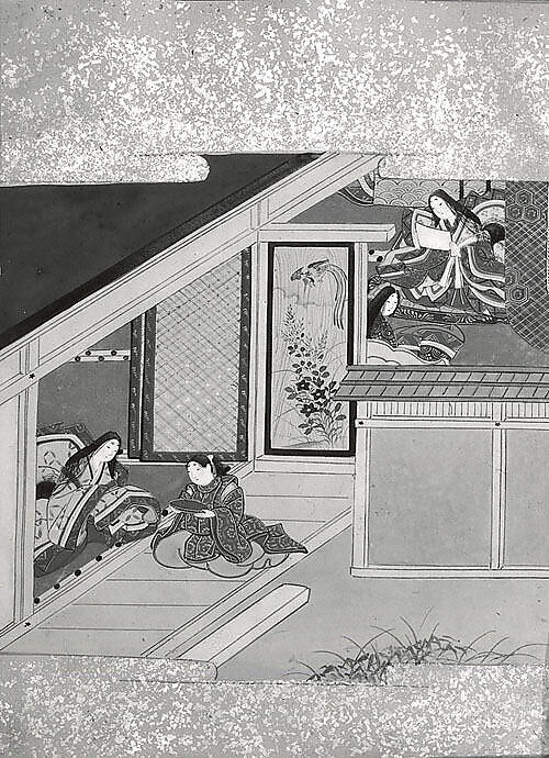 The Tales of Ise (Ise Monogatari) is a tenth-century collection of some 125 brief tales in which poems are the central element. Together with the Kokinshū, the first imperial compilation of poetry (ca. 905), it was a requisite part of a literate person's education for over eight centuries until the modern ear. Sumptuously illustrated manuscripts such as this set of three books would have been a prized part of a dowry and a proud possession of an upper-class family. In this example, forty-nine jewel-like miniatures rendered in brilliant mineral colors and framed in stylized cloud bands of sprinkled gold foil follow widely used conventions of the Tosa-school artists.