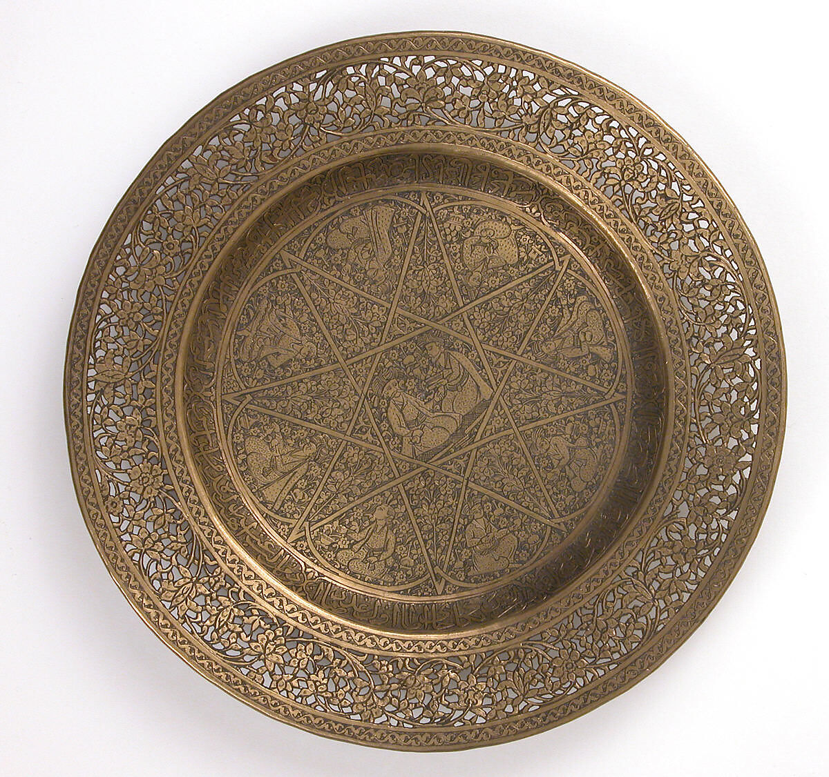- Medium: Brass; engraved and pierced