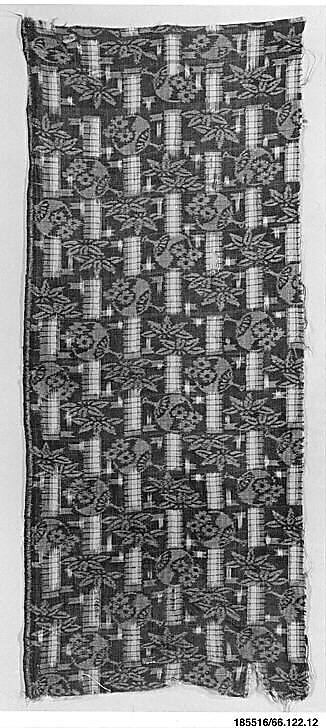 - Title: Piece of Cloth for Kimono with Pattern of Round Fans (Uchiwa), Bamboo, and Interrupted Stripes