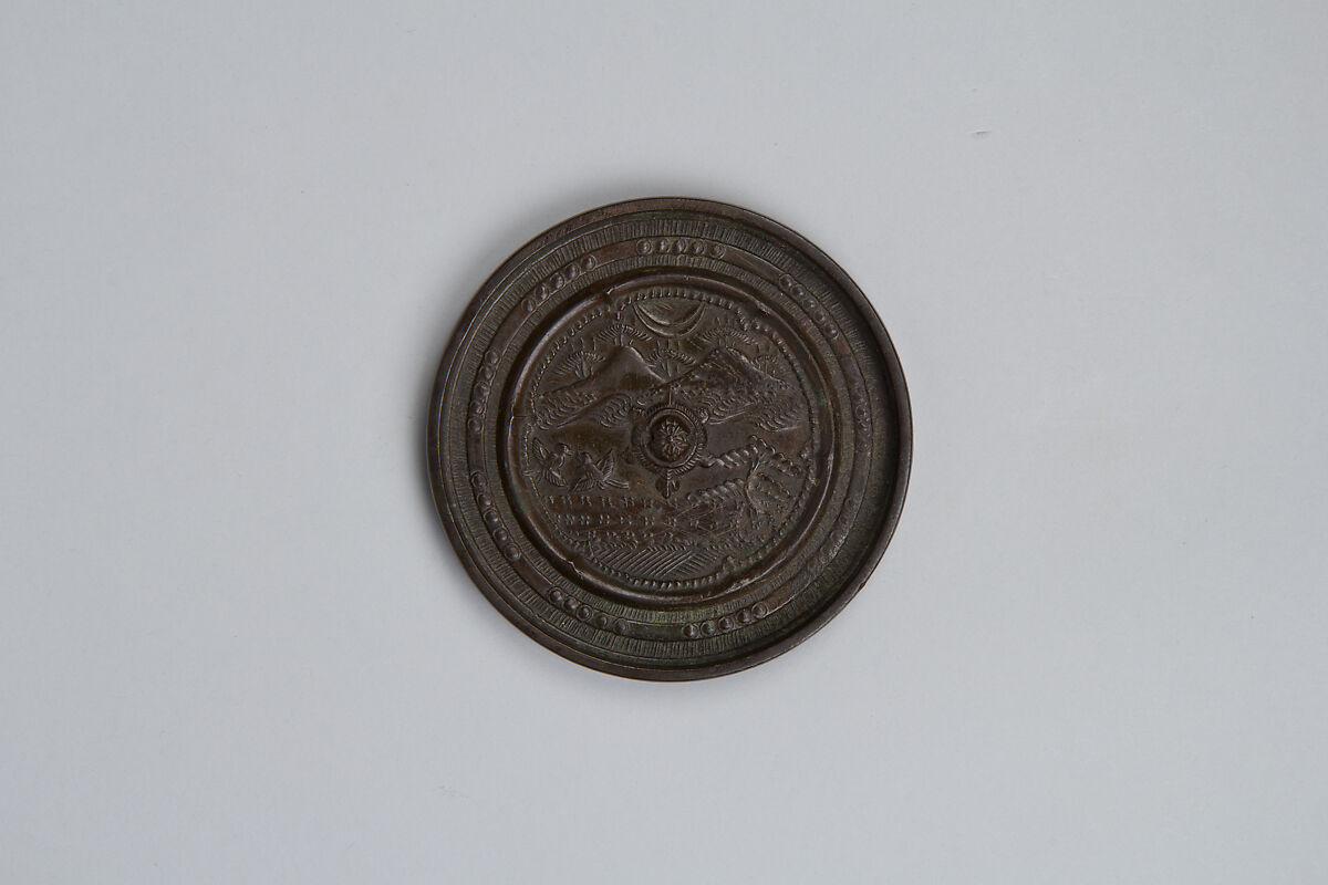 - Title: Mirror with Decoration of Japanese Landscape: Pines on Shore and Crescent Moon over Mountains