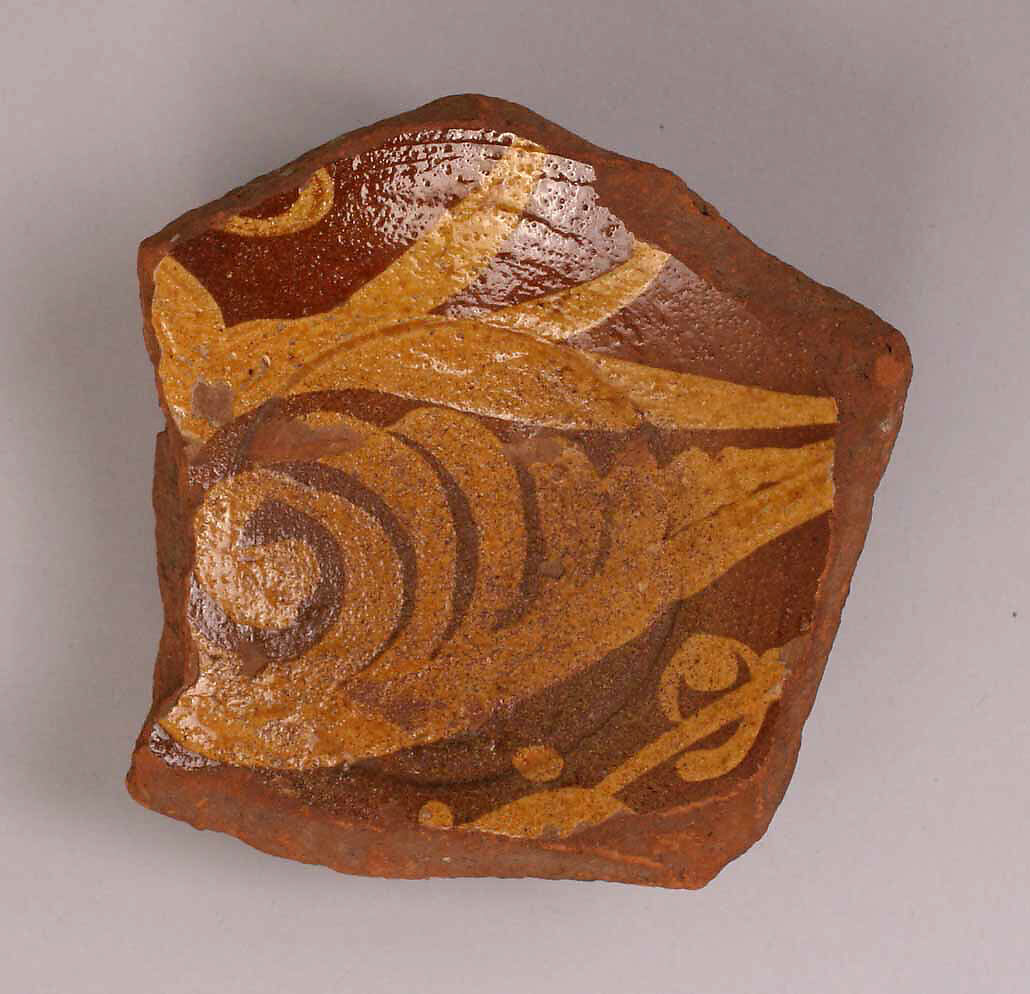 - Medium:Earthenware; slip-painted under transparent glaze