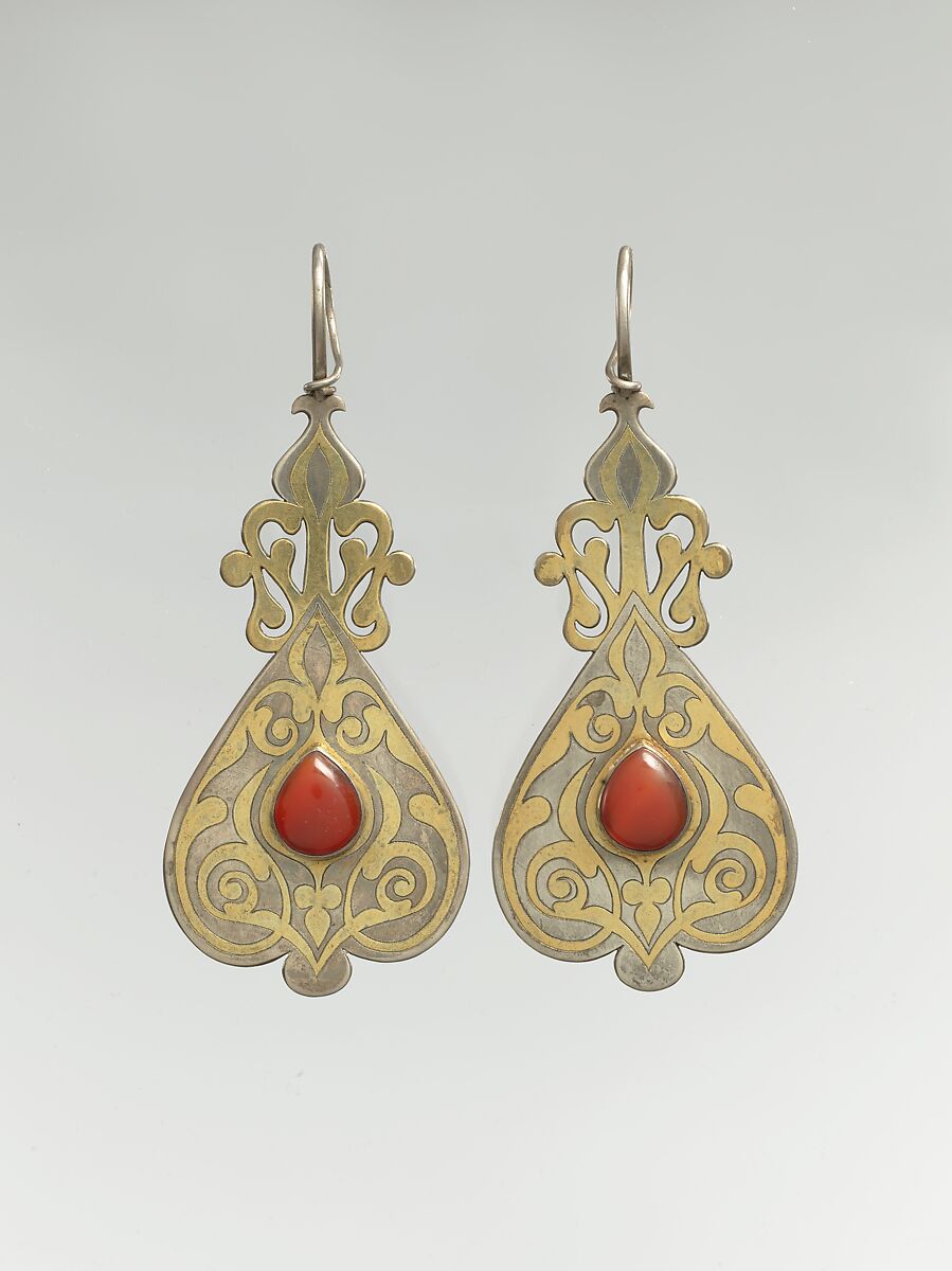 - Medium: Silver; fire-gilded and chased, with openwork and cabochon carnelians