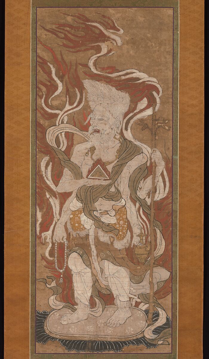 The Twelve Celestial Guardians, or Jūni-ten, are a force of protective deities worshipped in some schools of Buddhism. All are derived from Indian gods. Shown here are Bonten (Brahma), the god at the origin of all things, and Katen, the god of fire. Originally from a suite of twelve, these images would have been used to safeguard a ritual space.