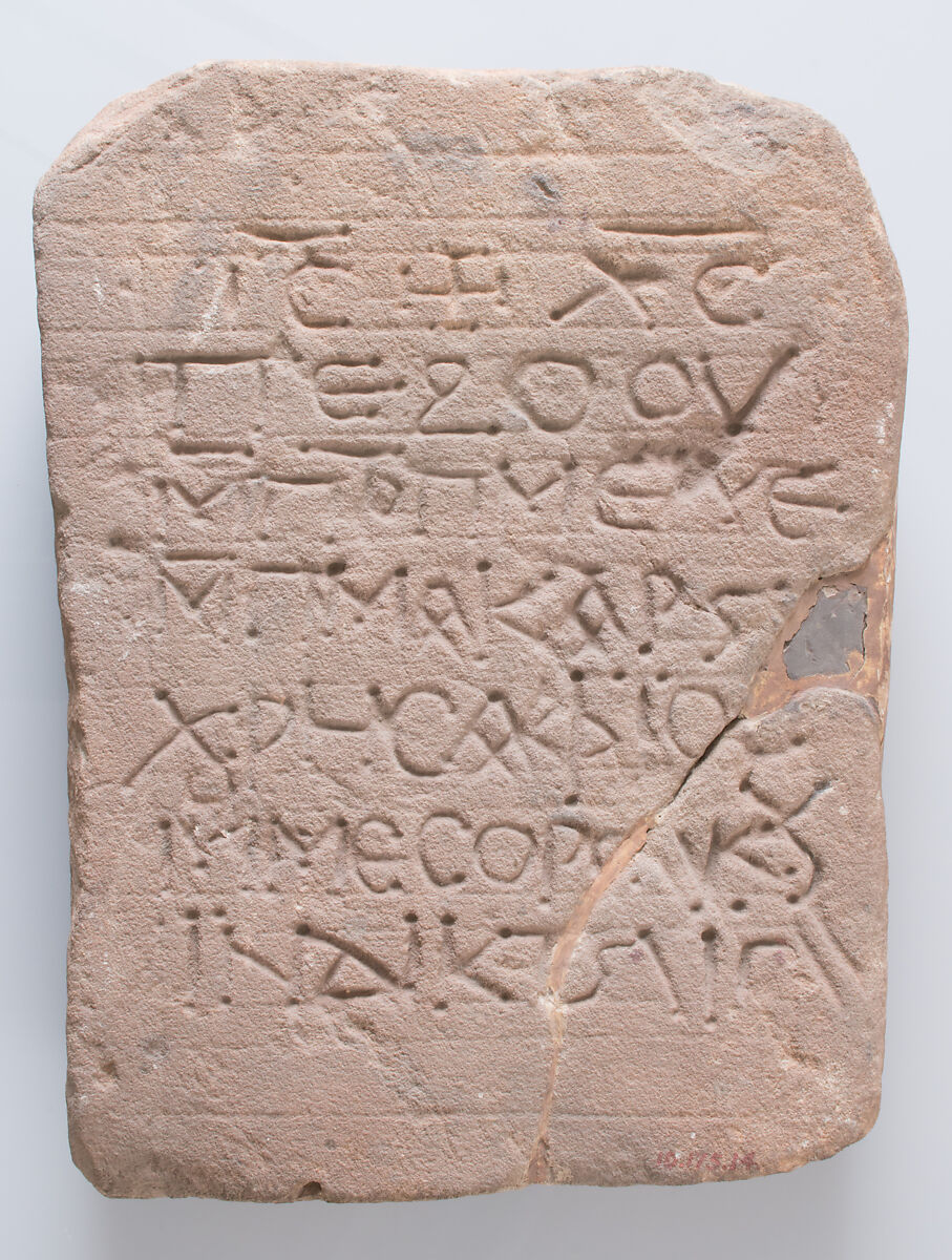 Funerary stelae from the Byzantine period in Egypt are thought to have been produced in quantity, then modified for individual use. Inscriptions were often added to identify the deceased.