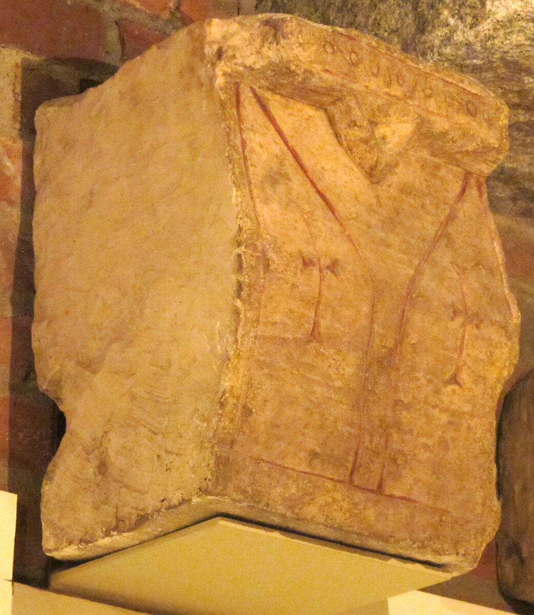 - Medium: Limestone, red pigment; incised