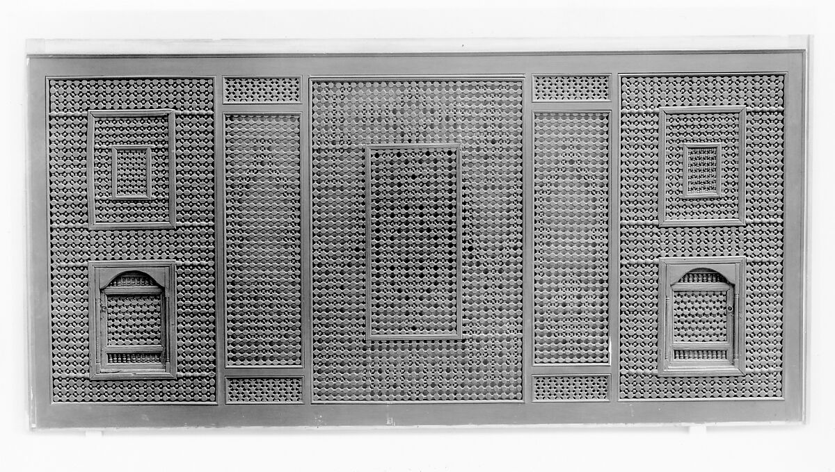 Wooden window screens, mashrabiyyas, usually have small windows from which the observer can see the outside world without being seen. Yet mashrabiyyas were also installed inside the house for the onlooker to be able to observe the courtyard of the house with privacy. This mashrabiyya screen contains the same type of windows that appear on 11.86.2a, b.