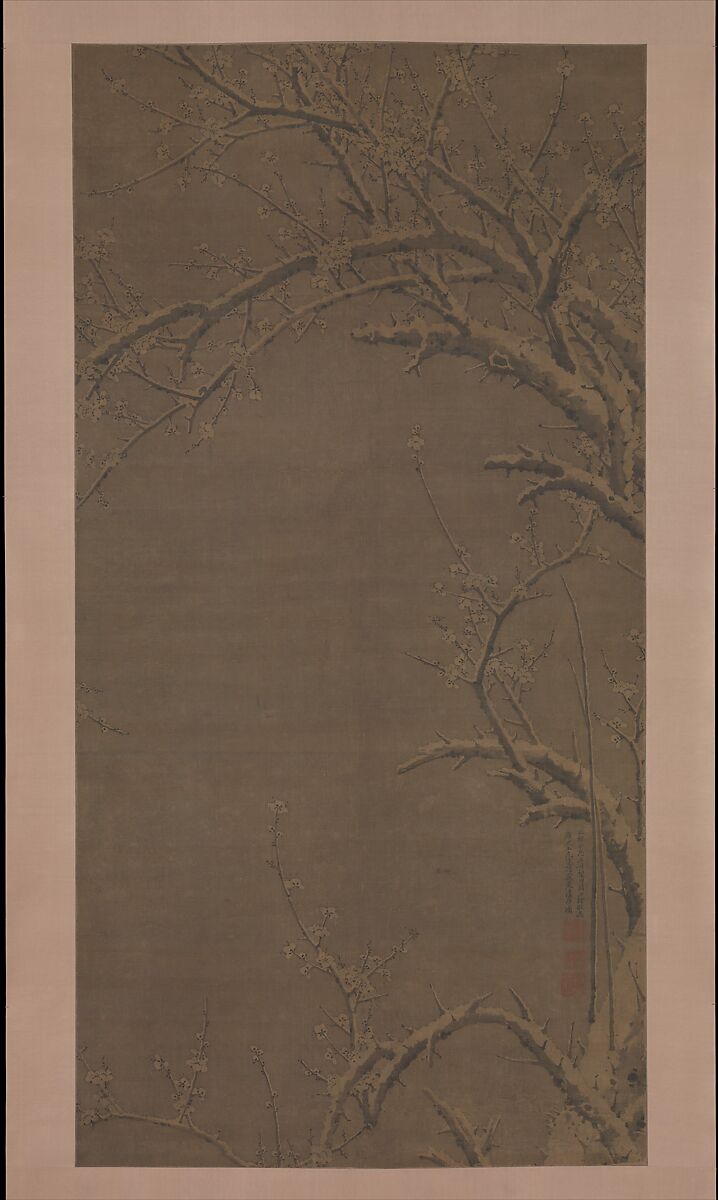 Flowering through snow and cold, plum blossoms are popular symbols of court beauties and of reclusion; as such, they embody romance, tears, lost loves, and the eternal return of springtime. Xu Jing entitled his painting The Pure Whiteness of Winter, partaking of a tradition of imagery in poetry and painting that goes back one thousand years.