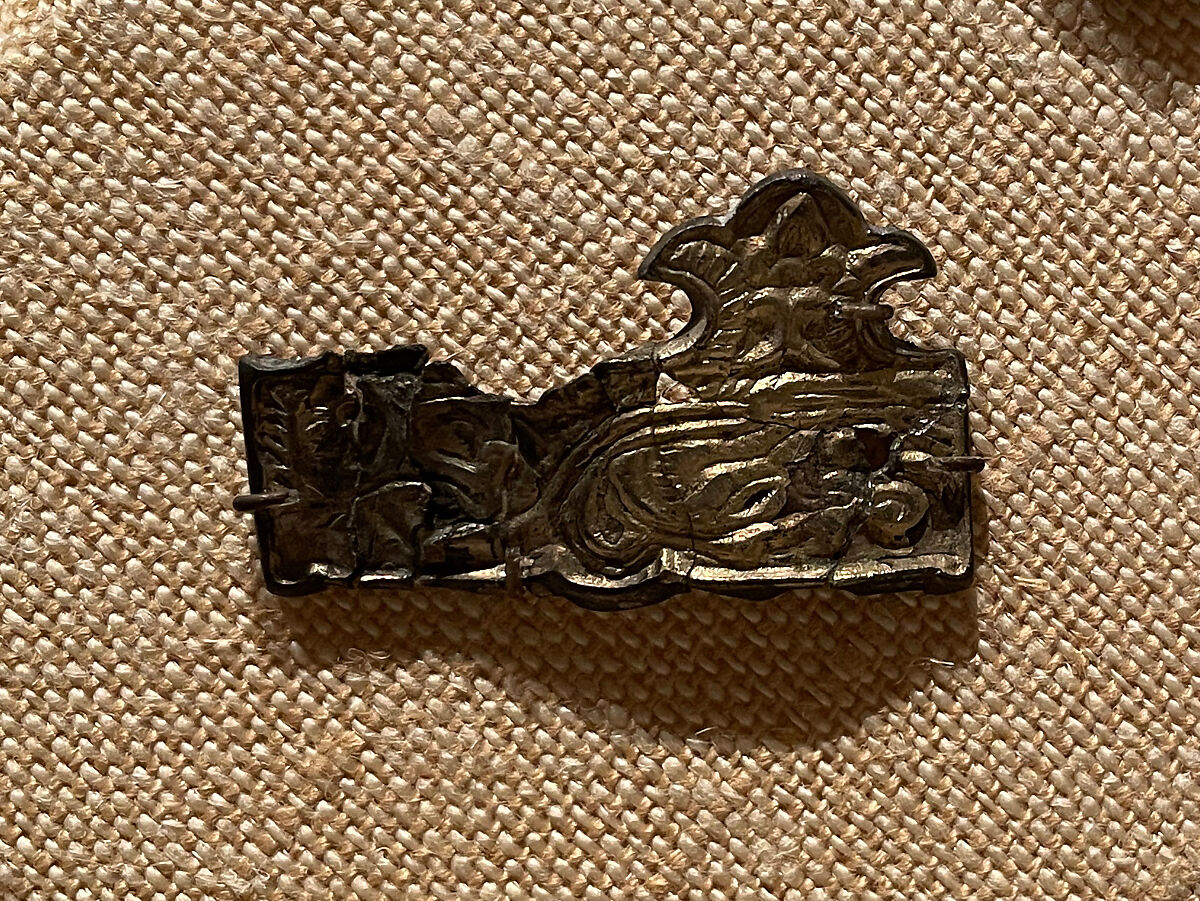 This belt fitting was excavated at the site of Tepe Madrasa in Nishapur.