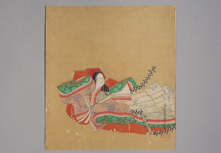 - Medium:Unmounted shikisi leaf; ink and color on silk