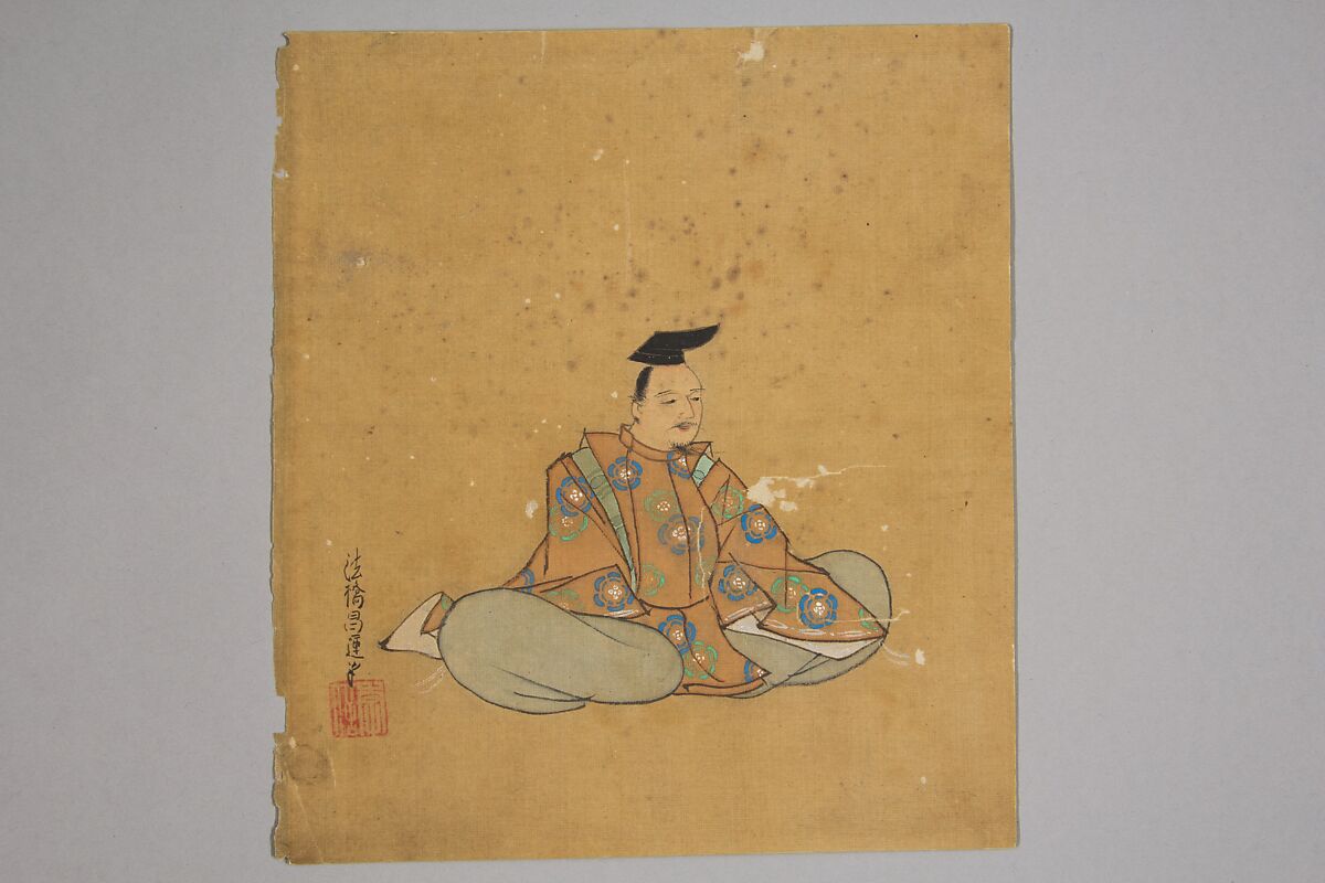 - Medium: Unmounted shikisi leaf; ink and color on silk