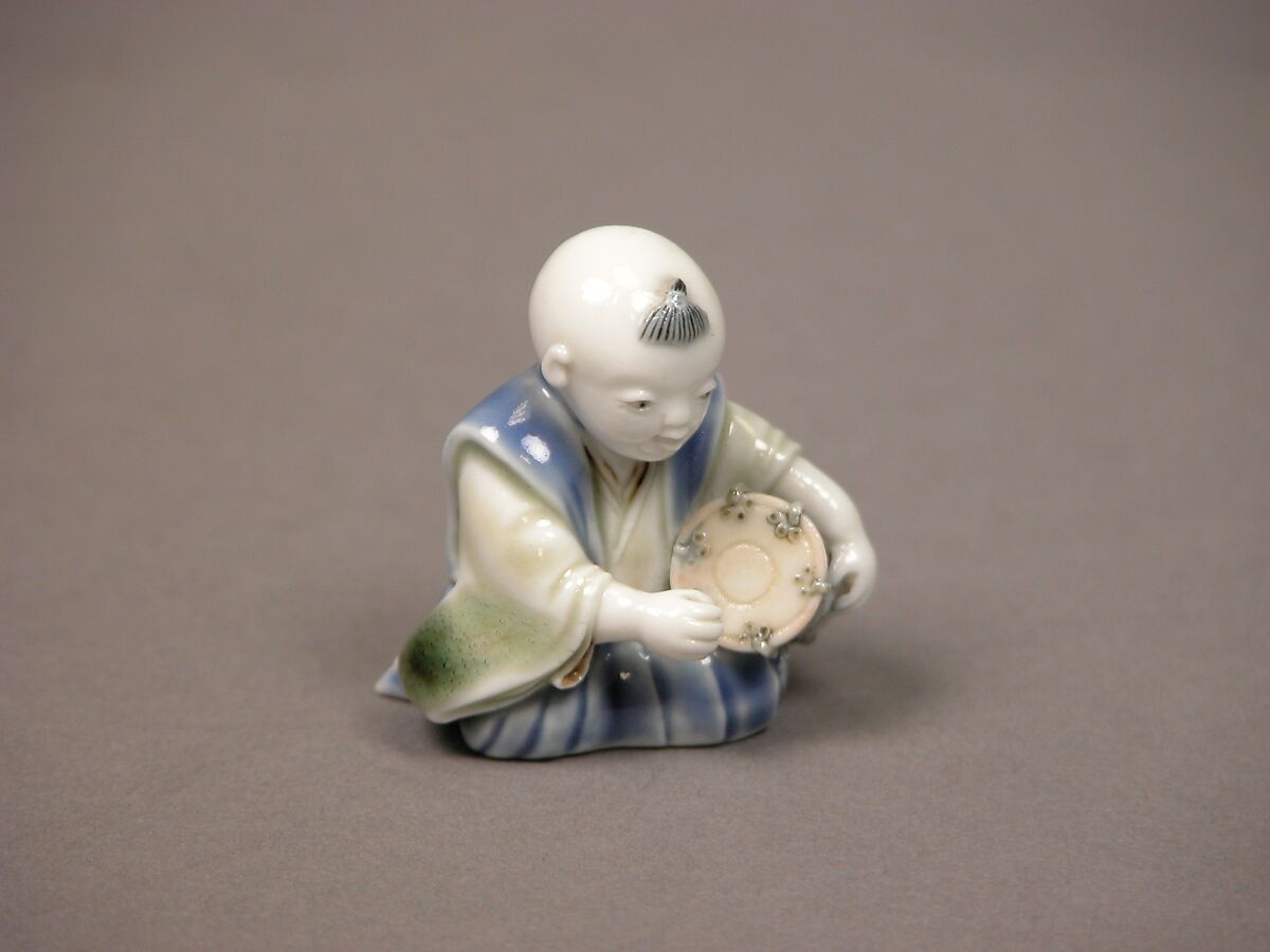 - 染付色絵囃子唐子形置物