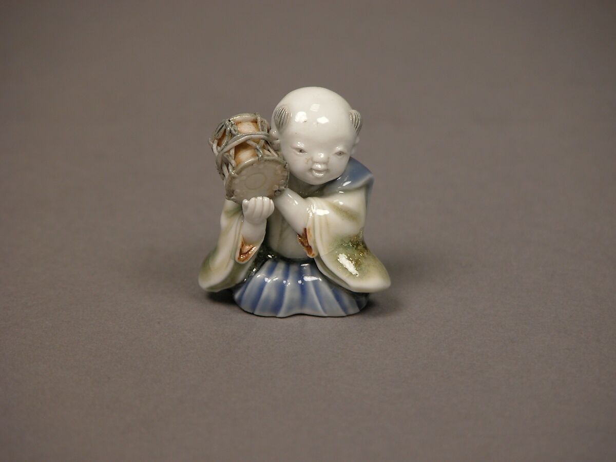 - 染付色絵囃子唐子形置物