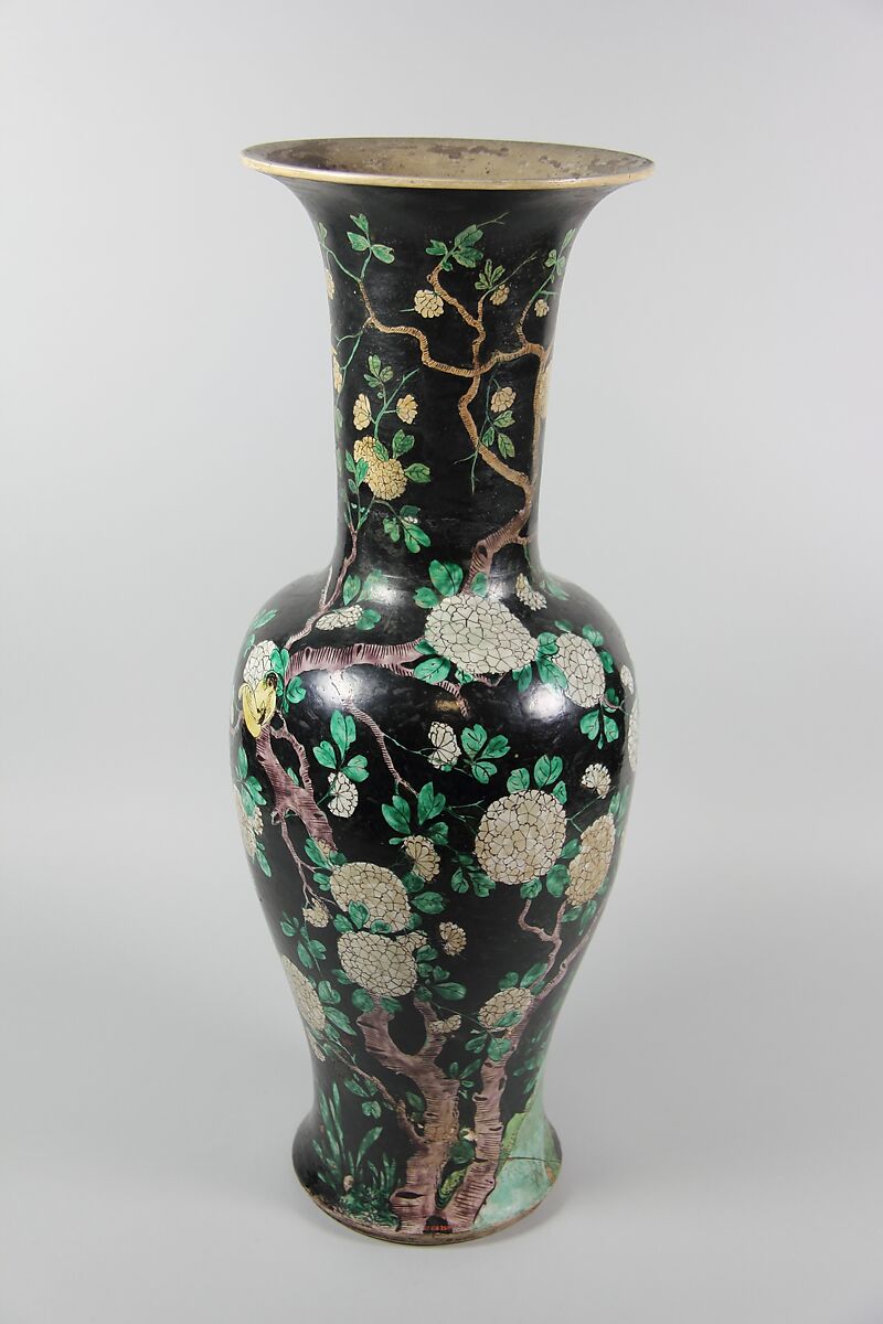 - Medium:Porcelain painted inpolychrome enamels over black ground (Jingdezhen ware, famille noire)