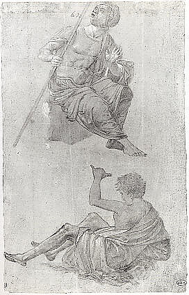 - Medium: Metalpoint, brush and gray wash, touches of white, on gray prepared paper