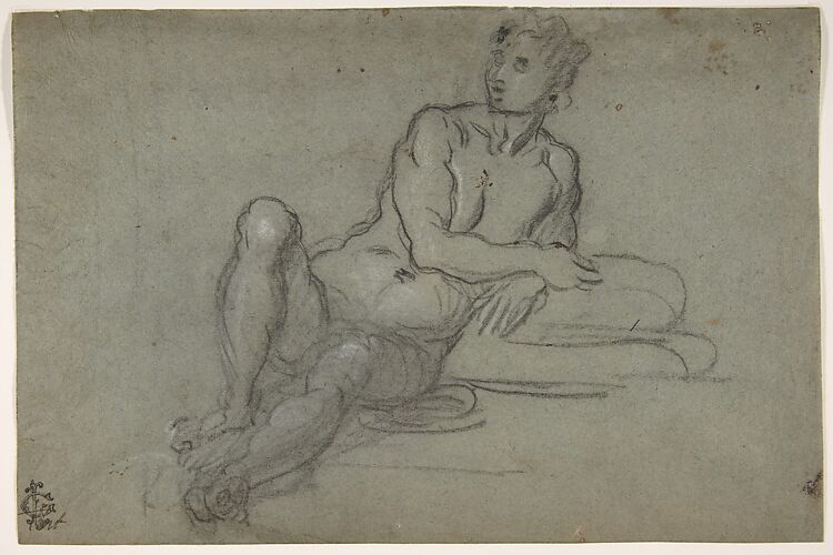 Domenico was the son and pupil of the renowned Venetian master, Jacopo Tintoretto. While the influence of Jacopo’s rhythmical line is evident in the drawings of his son, Domenico developed an individual style of draftsmanship characterized by softer and more naturalistic modeling, as illustrated in this study of a female nude, one in a series depicting heavily foreshortened figures in various reclining poses, including several others in the Lehman Collection. These studies may have served as reference points for the voluptuous, recumbent figures of Venus and Danae that abound in paintings by the Tintoretto workshop Domenico’s series of female nudes epitomize the primacy of drawing after live models in the Tintoretto workshop.