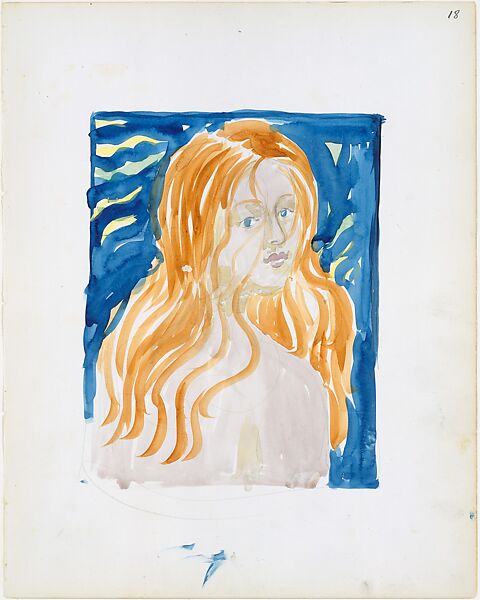 This half-length study of a nude woman is unique in Prendergast’s Boston work of the 1890s. Overtly sexual, the red-headed woman recalls sirens in the artist’s sketches of men’s smoking fantasies for J.M. Barrie’s My Lady Nicotine (on display in exhibition). The loose, broad undulating brushwork is anomalous in the context of the Public Garden Sketchbook watercolors.