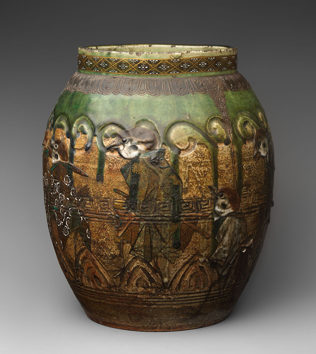 - Medium: Pottery decorated at the neck in polychrome enamels (Seto ware)