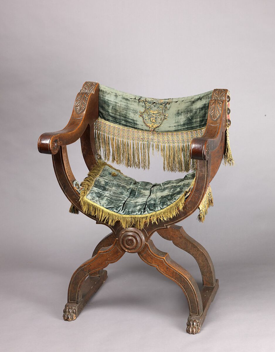 - Date:15th or 16th century (textiles); 16th century (chair)