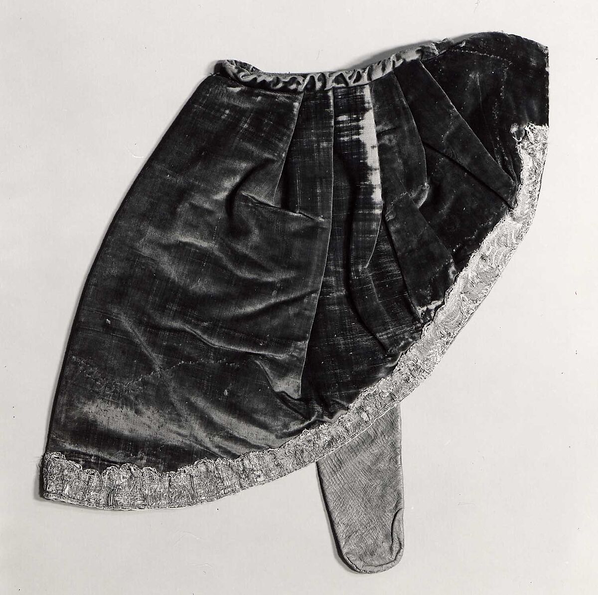 - Medium:Dark red silk warp-float faced 3/1 broken warp chevron twill weave with supplementary pile warps forming cut solid velvet.