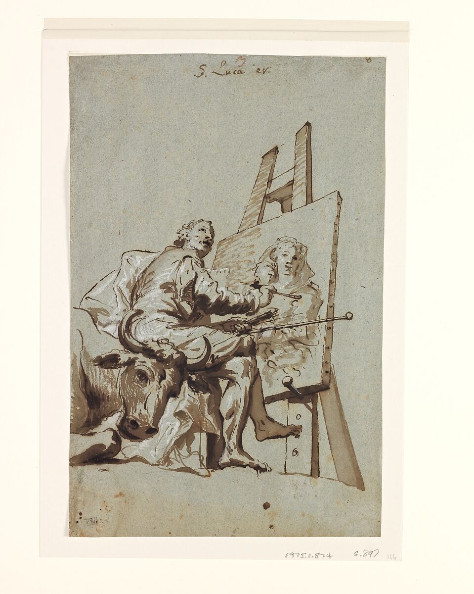 - Medium: Pen and brush in brown ink heightened with white on gray-blue paper.