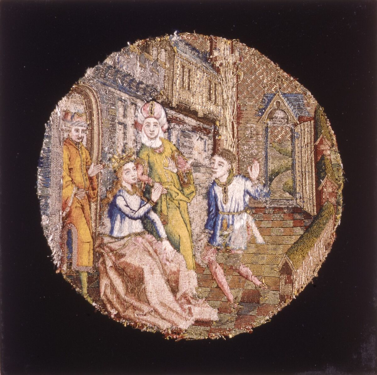 - Medium: Linen; embroidered with silk; silver; and silver-gilt threads