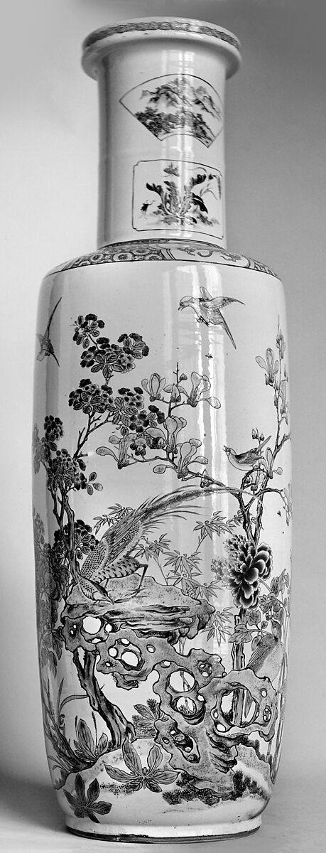 - Title:Vase decorated with magnolia, hollyhocks, and pheasants