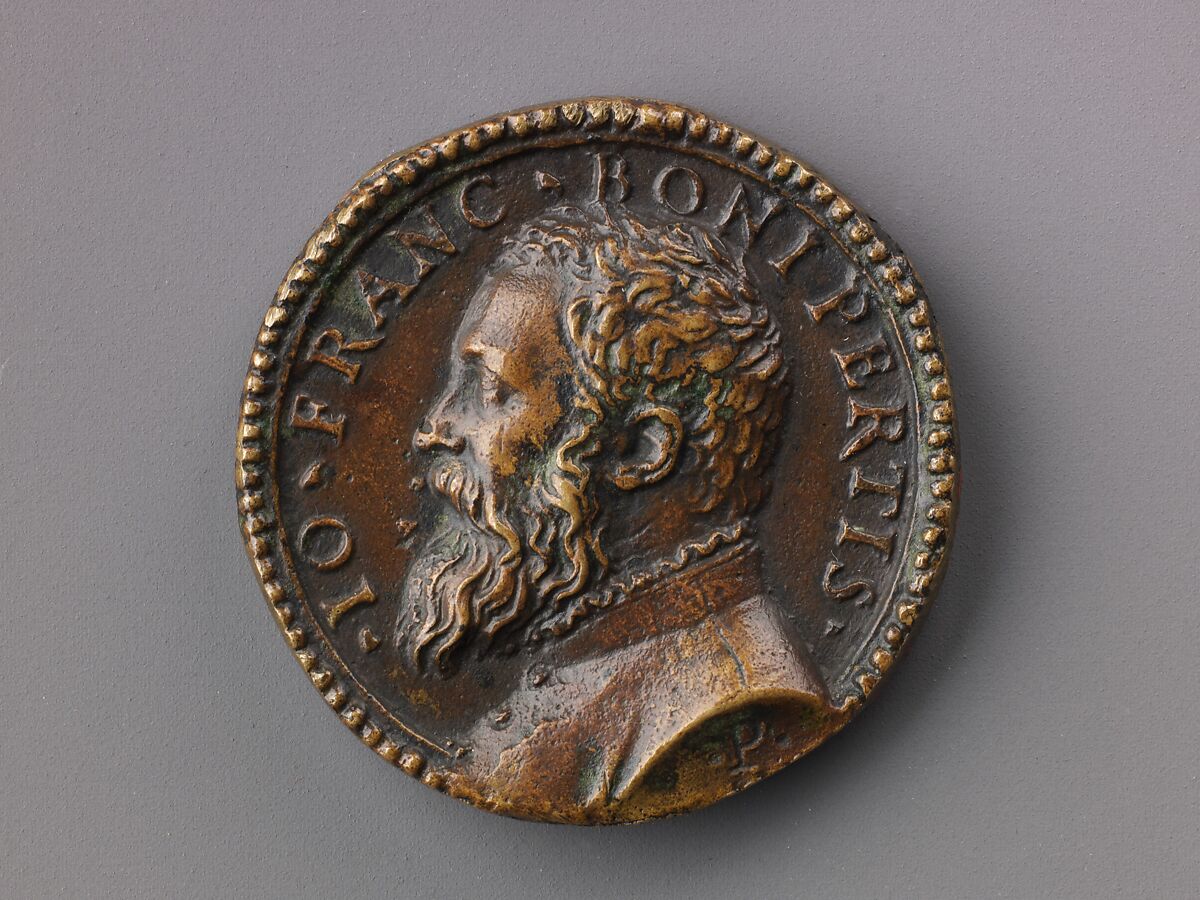 Pastorino de Pastorini was an Italian medallist, glass painter and die engraver. One of the most prolific Italian medallists, he produced around 200 medals. He was active in Ferrara, Bologna, Novellara, and Florence. On the obverse is a portrait of Gianfrancesco Boniperti (dates unknown); the reverse portrays an apple on a branch, which may have been his personal emblem.