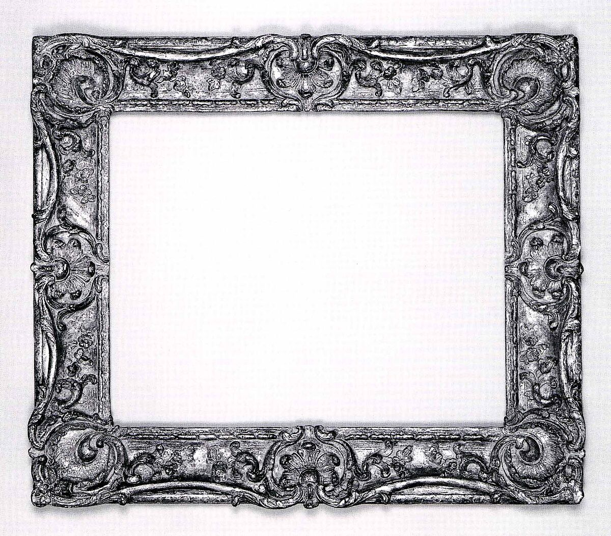 The sight-edge rocaille has a particular elegance on this horizontal frame in the style of Jean-Baptiste Pillement (1728-1808), a painter and ornamental designer who worked in Lyon.