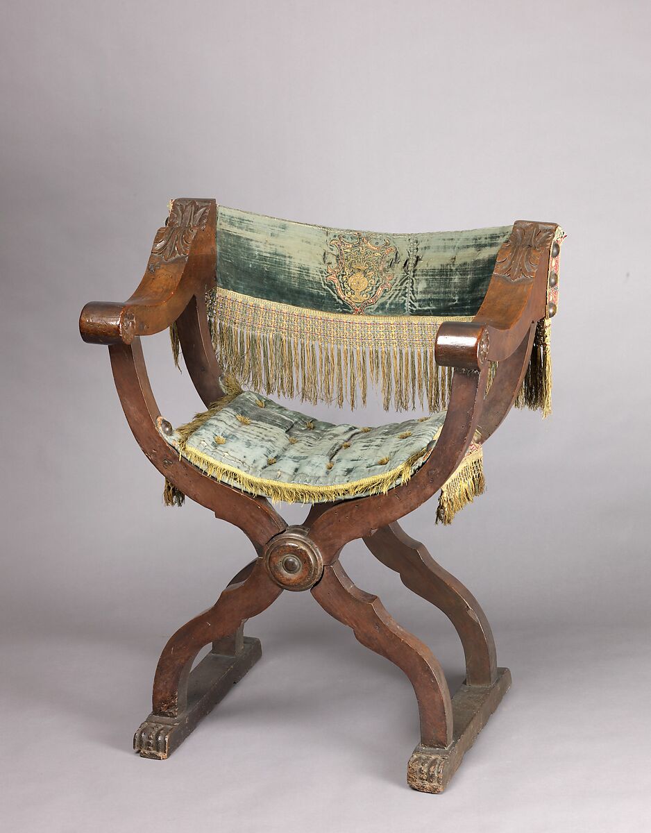 - Date:15th or 16th century (textiles); 16th century (chair)
