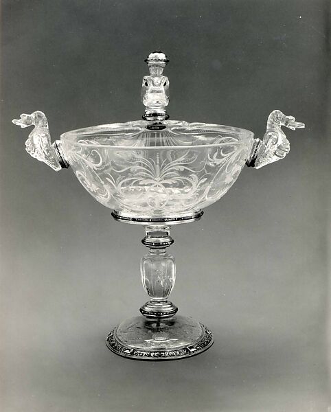 - Medium: Rock crystal, cut on the wheel, enameled gold, rubies, and diamonds.