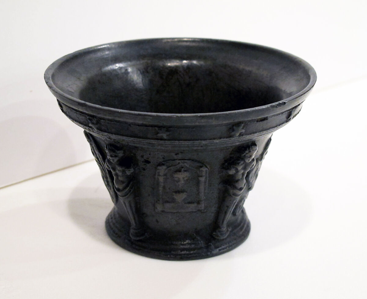 - Medium:Copper alloy, with a grayish patina color, traces of green oxide on base.