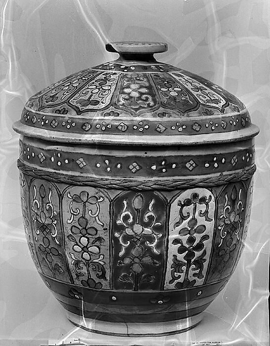 - Title: Covered bowl with floral pattern