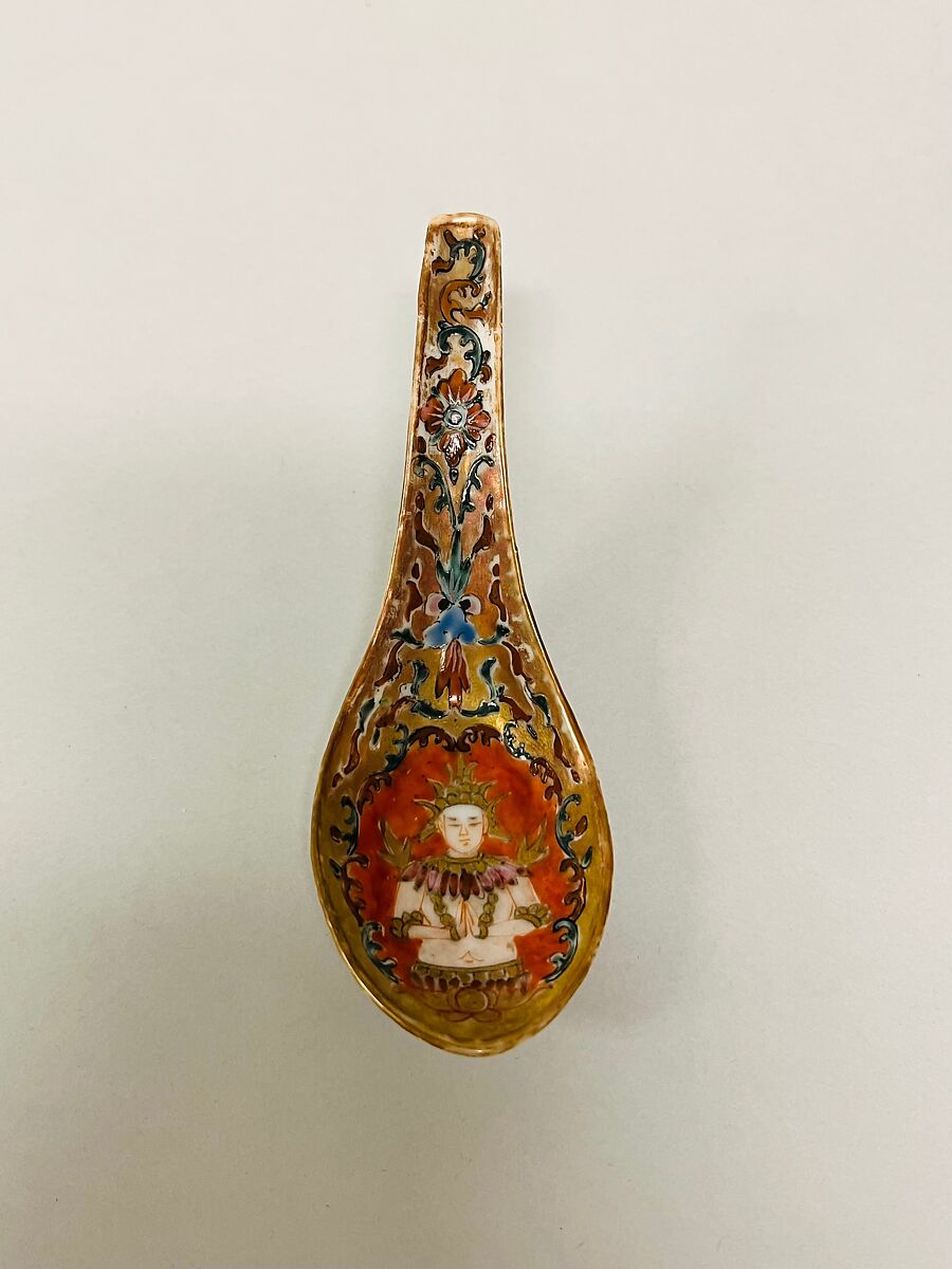 - Medium: Porcelain painted in overglaze polychrome enamels (Bencharong ware for Thai market)
