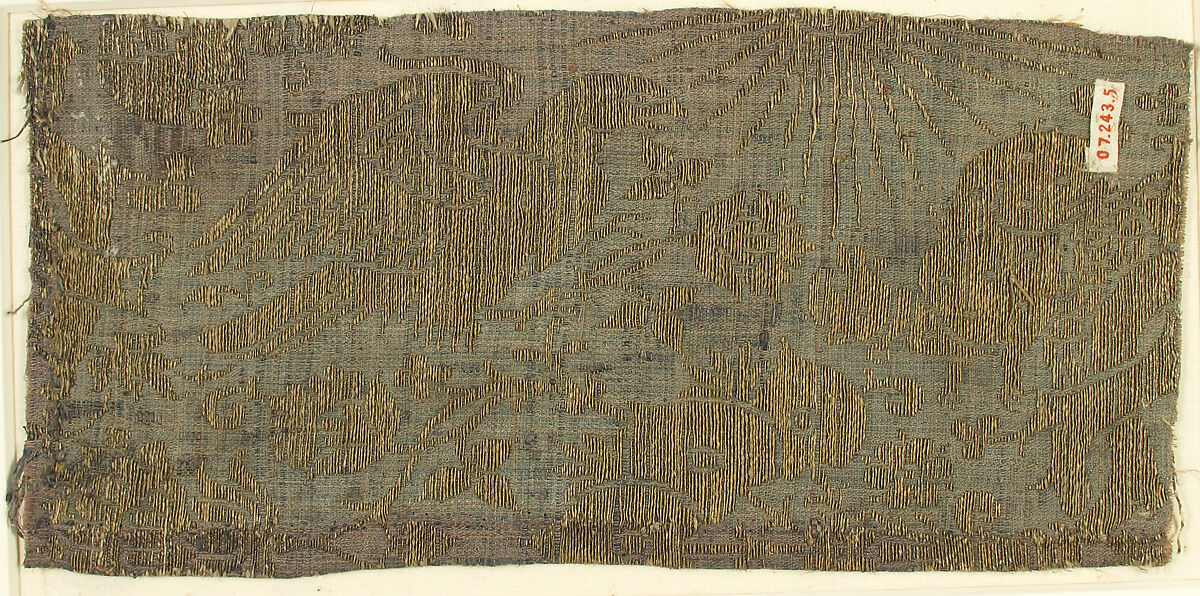 - Dimensions: (a) actual textile: 4 1/2 × 9 1/2 in. (11.4 × 24.1 cm)