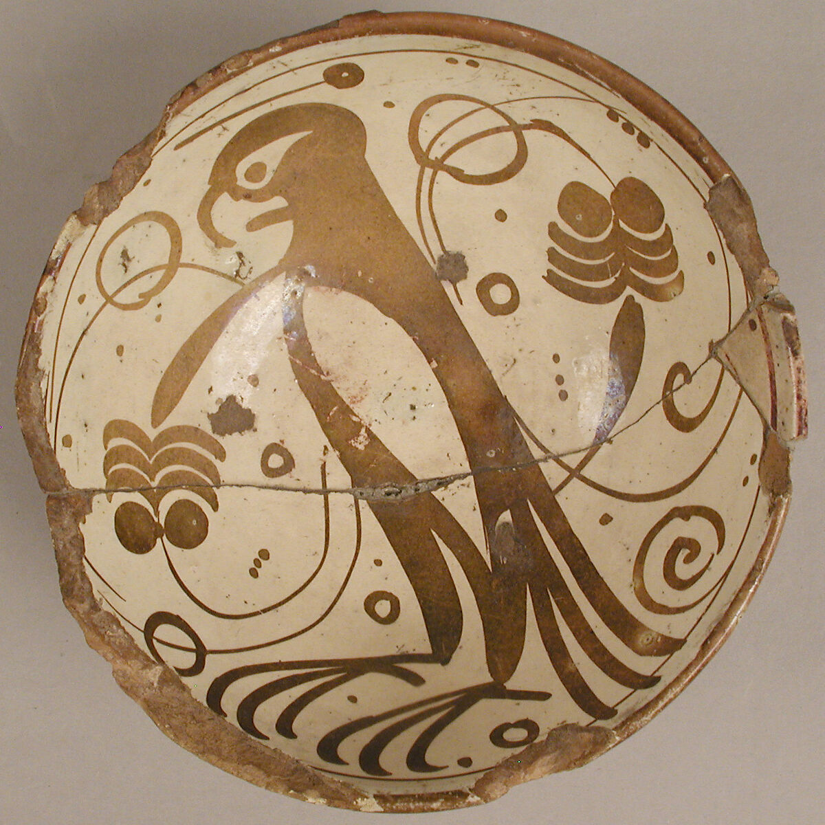 Lusterware is the term used to describe a glazed earthenware ceramic decorated with an iridescent finish. The technique for creating this finish was developed in the ninth century under the rule of the Abbasid Caliphate in present-day Iraq. The medium involves a technique that is difficult to master, but if completed successfully, the surfaces of the ceramic objects display an iridescent sheen which is achieved through multiple firings and the application of a metal-based pigment (including silver, copper, tin, or a combination of these). Lusterware manufacture is still difficult to understand from a technical perspective because for generations, production was kept secret to protect workshop practices from being replicated by competitors. Therefore, pigment formulas and trade techniques were passed down from master to pupil and rarely recorded.