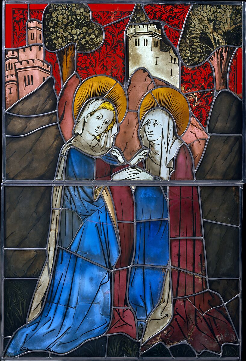 This panel was part of a window depicting the ancestry of Christ in the form of a Tree of Jesse. The painter of this window, adopting an angular style of drapery folds and subtle color juxtapositions, initiated a new style of glass painting in the Middle Rhine.