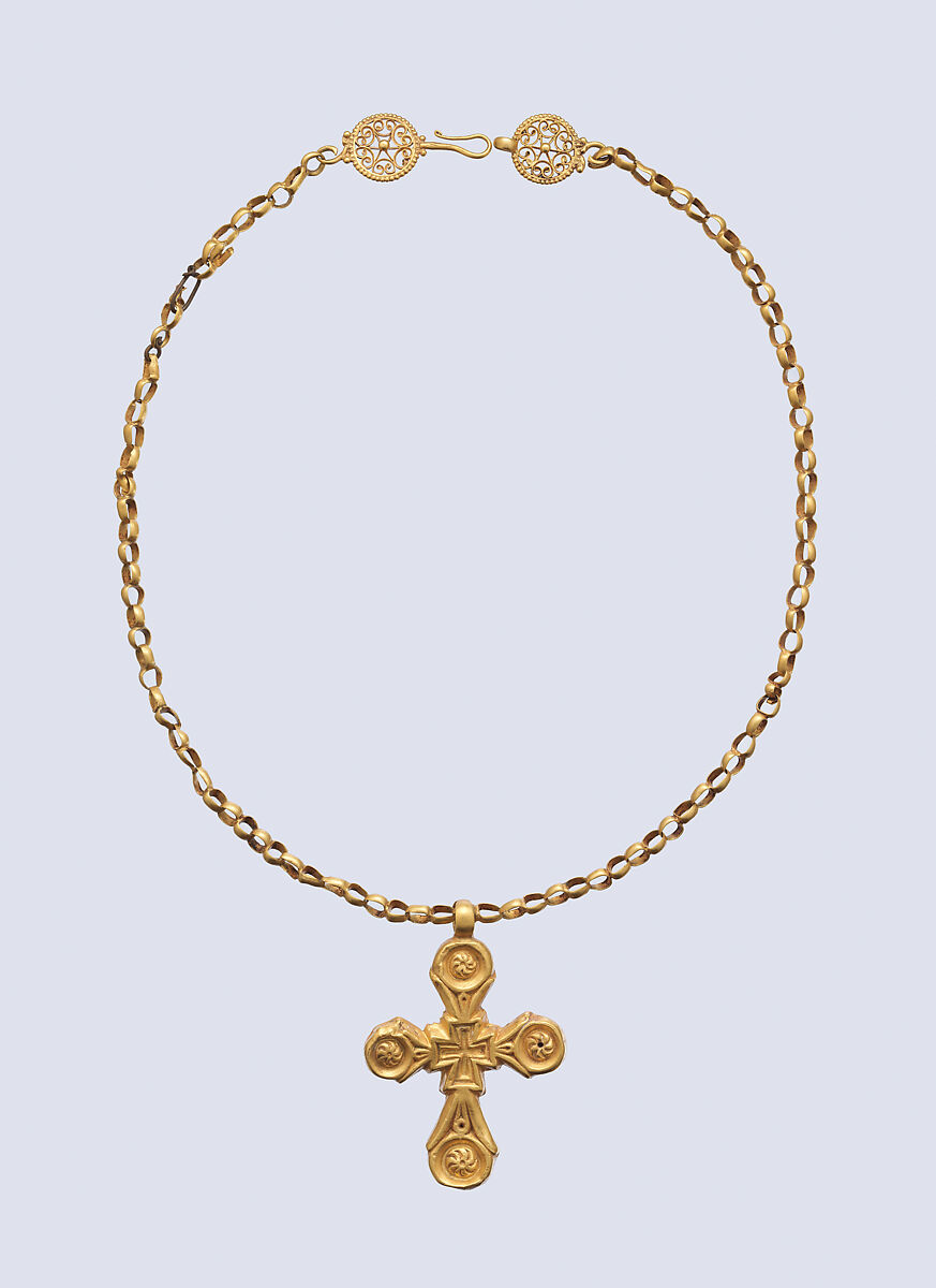 Overall (cross pendant): 2 3/16 x 1 1/2 x 1/4 in. (5.5 x 3.8 x 0.6 cm) - Classification:Metalwork-Gold