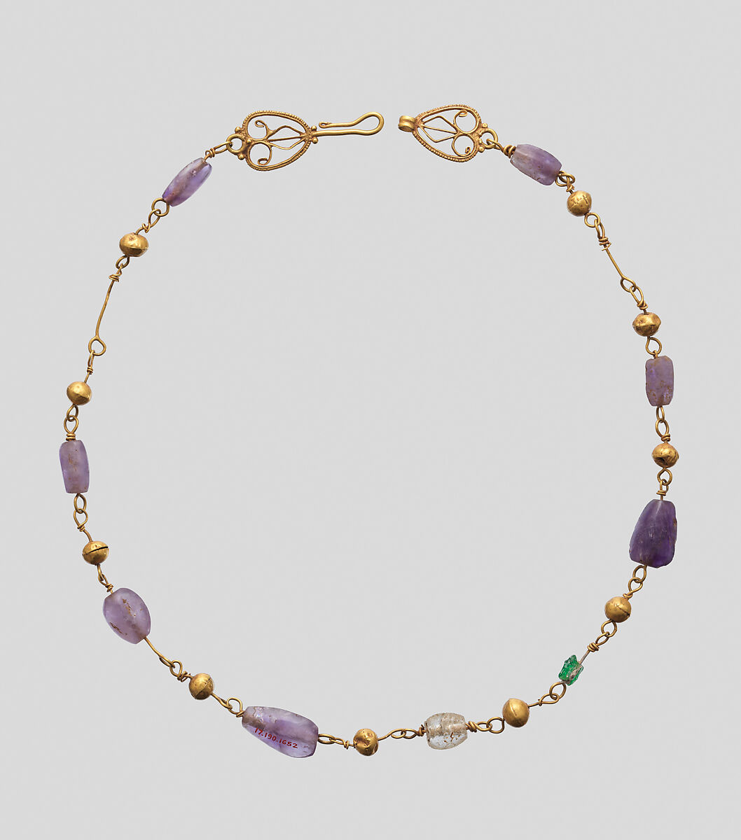 - Title: Gold Necklace with Amethysts, Glass, and Gold Beads